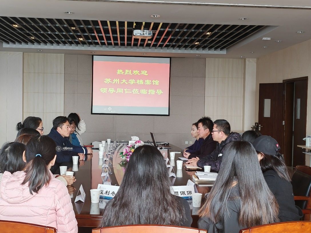 12月7日上午,苏州大学档案馆徐云鹏馆长、庄刘成副馆长等一行13人到我馆调研交流,汪双喜副馆长对苏州大学档案馆一行表示热烈欢迎。