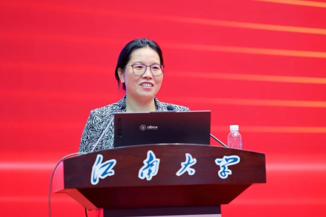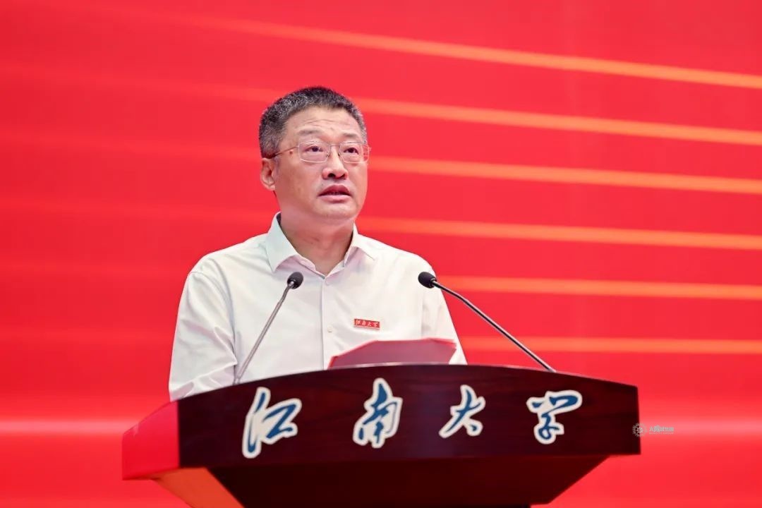 报告会最后,党委研究生工作部部长、研究生院院长、卓越工程师学院执行院长吴小俊教授为新生送上寄语。他对全体研究生新生表示热烈欢迎,并寄望于大家能够迅速融入研究生的学习和生活节奏,秉持着笃行奋进的学习态度,以坚定的信念和行动,迎接挑战,成就卓越。