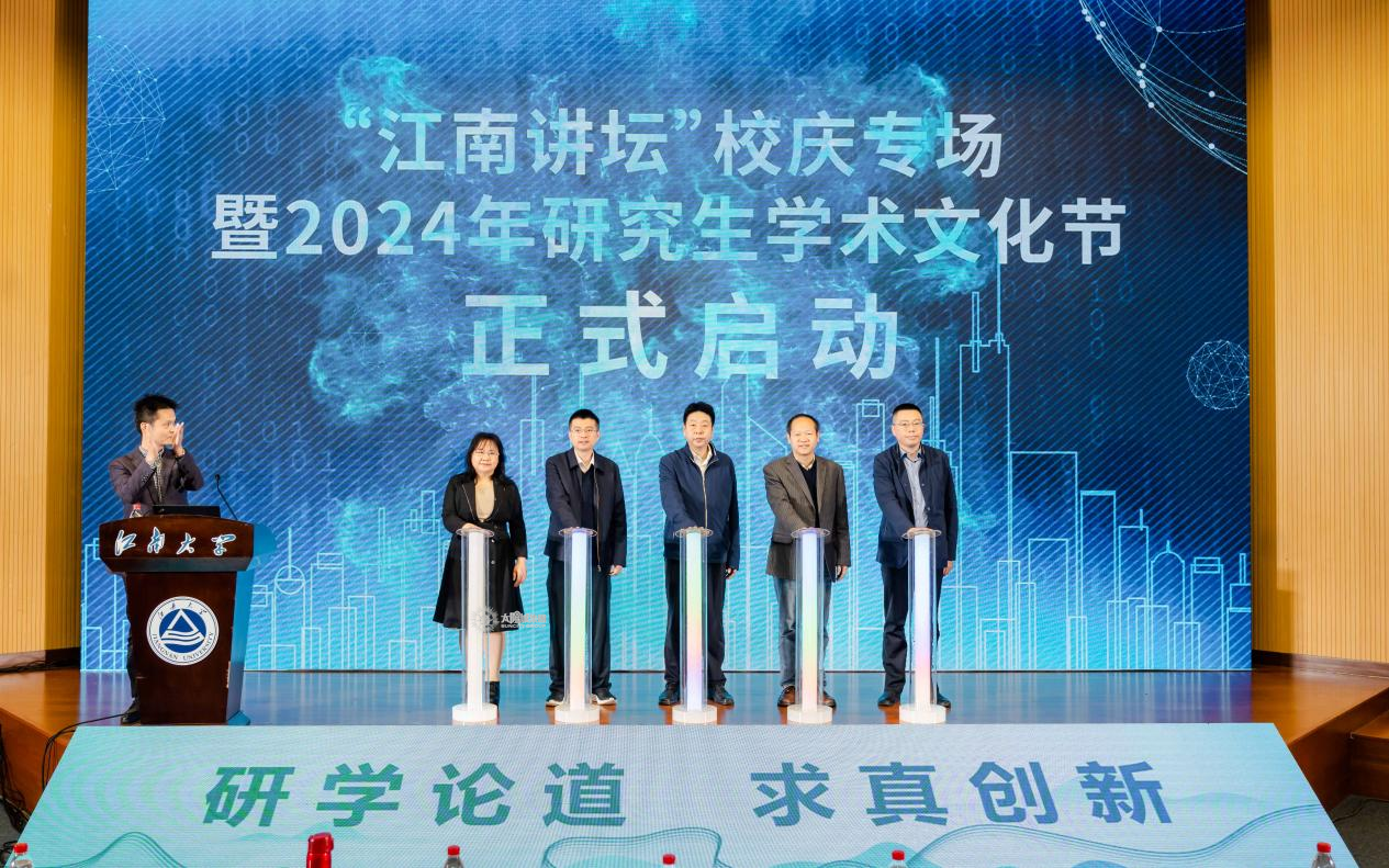 接着,到场嘉宾、领导一起为“太阳城讲坛”校庆专场暨2024年研究生学术文化节揭幕,吴小俊介绍活动有关情况。