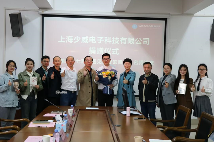 4月2日15:30,外国语学院于会议室A349举办上海少威电子科技有限公司捐赠仪式暨第二十七期“遇见更好的自己”名师讲座。上海少威电子科技有限公司总经理华锦洲、外国语学院党委书记李荣华、院长方文开、党委副书记刘伯贤、英语系主任杨勇、教授袁雪生、副教授李文、社会资源与校友联络部主任程方以及学生代表参加本次活动。本次活动由刘伯贤主持。