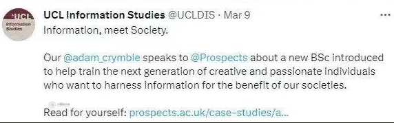 不仅如此,UCL还新增设了一个全新的专业——社会信息/Information in Society BSc(GL00)。