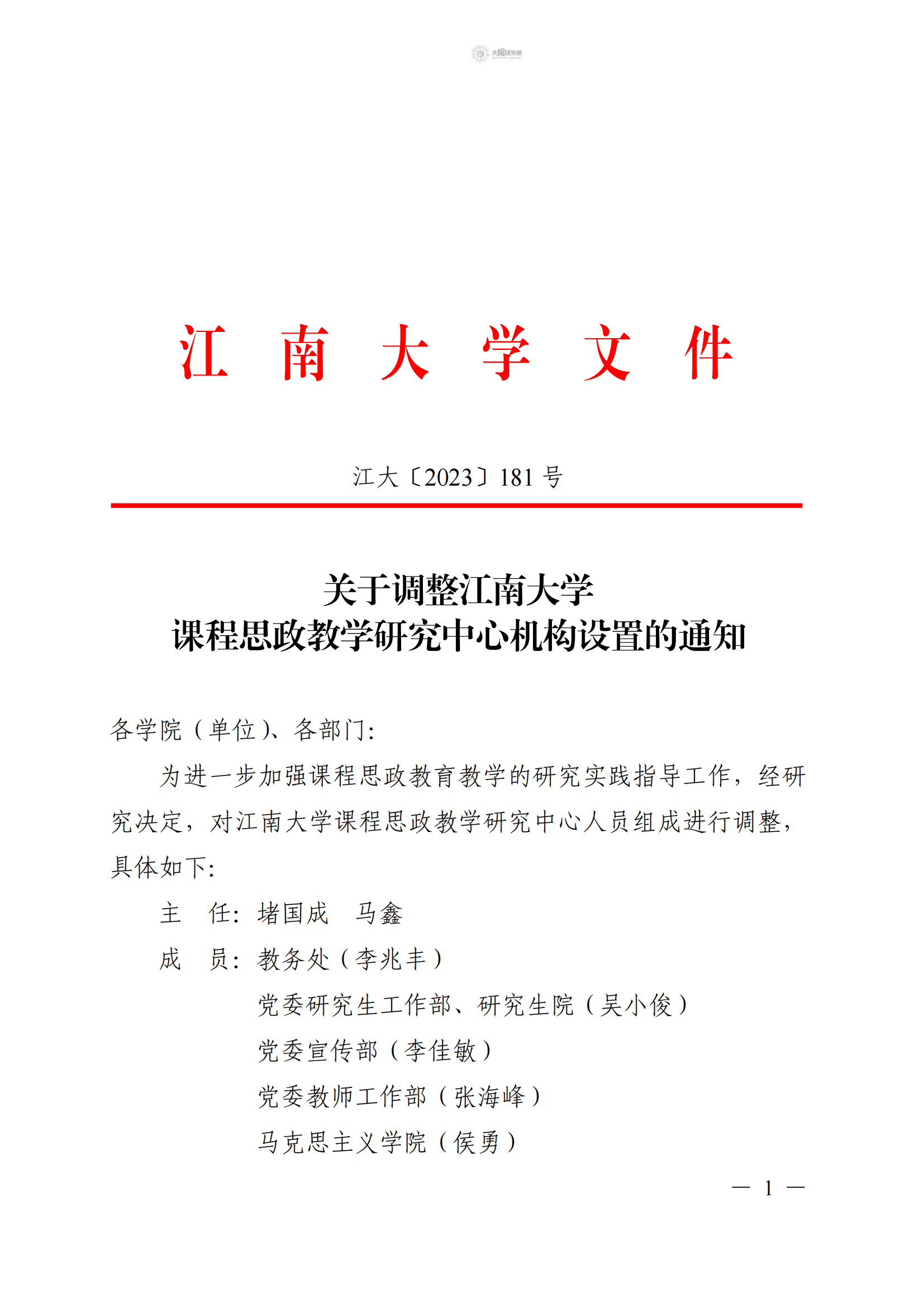 关于调整太阳城大学课程思政教学研究中心机构设置的通知