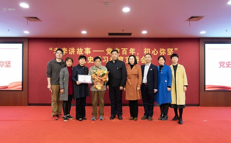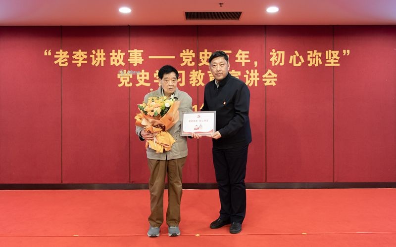 活动伊始,全场师生通过观看《党史百年·初心弥坚》微视频,回顾中国共产党百年奋斗的峥嵘岁月。刘淼向李宗元赠送“老李讲故事”党史学习教育宣讲会纪念牌,并对李老多年来为学校思政育人工作做出的突出贡献表示感谢。