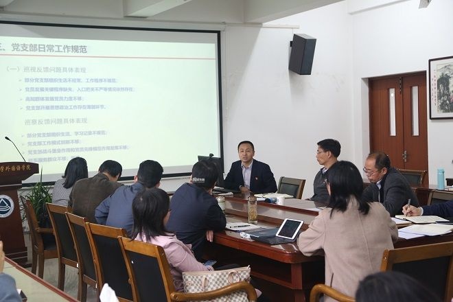 会上,史志洪对校巡察组反馈的九个有关基层党建的问题进行了通报。他强调,针对这些问题,各支部应认真对照,落实整改,确保支部工作标准化、规范化。史志洪还对学院近期党建工作任务进行了梳理和部署,希望支部书记们带领支委委员群策群力,学用结合,切实发挥党支部的战斗堡垒作用,为学院建设添砖加瓦。