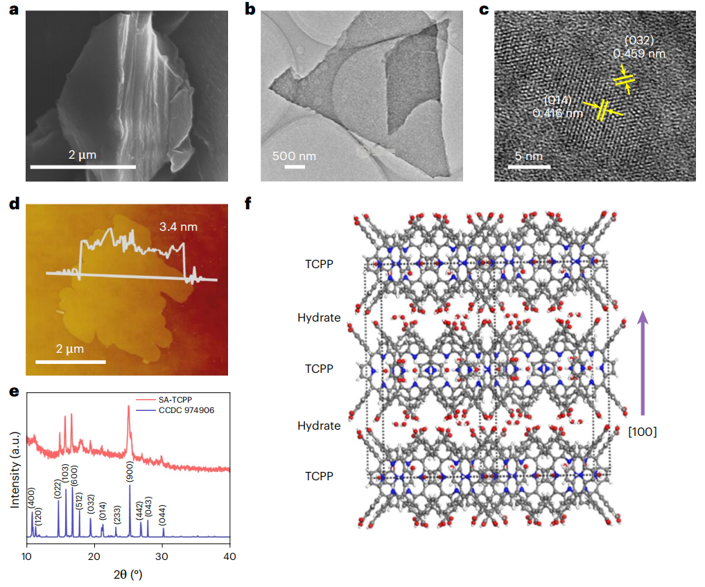 SA-TCPP纳米片的结构和形貌表征