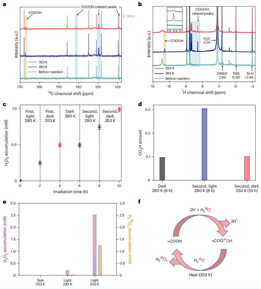 常温(293 K)下,SA-TCPP光催化产生H2O2的性能和CO3H反应中间体的累积