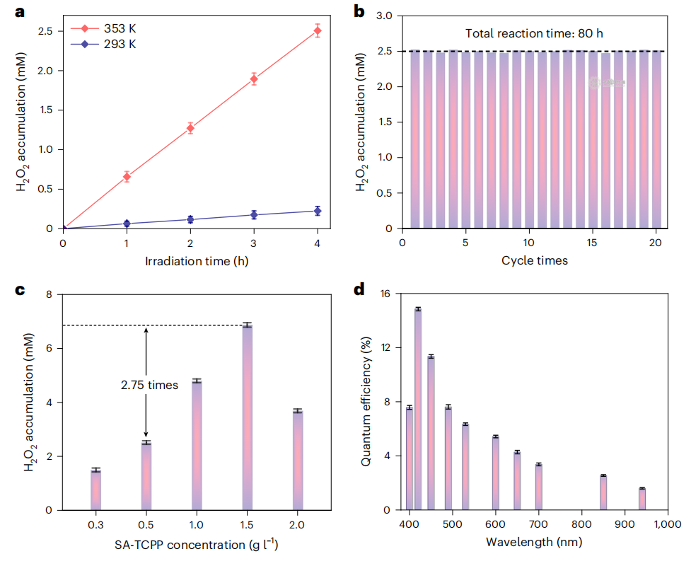 升温后(353 K),SA-TCPP超分子光催化剂产生H2O2的性能