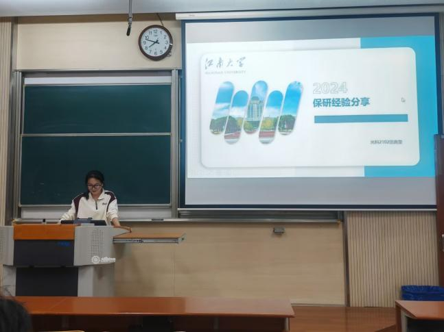 本次分享会邀请了光科21级的李炳涛、白洋、田高雯三位优秀学子,他们凭借卓越的表现成功分别保研至浙江大学、中国科学技术大学、北京理工大学。在交流会上,三位同学毫无保留地分享了自己的保研心得与成功经验。李炳涛以其丰富的夏令营经历为切入点,详细阐述了参加夏令营的全过程,并着重介绍了面试环节中的注意事项与应对策略。他的分享,让在场的同学们对夏令营有了更深入的了解,也激发了他们参与夏令营的热情。白洋则着重强调了保研所需满足的各类条件,如学科竞赛、科研项目、论文发表等。他结合自己的亲身经历,为同学们提供了宝贵的建议,鼓励他们积极参与各类活动,提升自己的综合素质。田高雯分享了保研前期准备工作的心得,以及在选学校、联系导师等方面的经验。她详细介绍了如何制定科学的备考计划,如何选择合适的学校和专业,以及在与导师沟通时的技巧与注意事项。她的分享,让同学们在保研的道路上少走了许多弯路。在互动环节,现场的学生们积极举手提问,就学习方法、专业选择、职业规划等方面的问题向学长学姐们请教。三位优秀学子耐心解答,用生动的例子和亲切的语言,为同学们提供了实用的建议和指导。现场气氛热烈而融洽,同学们纷纷表示受益匪浅。