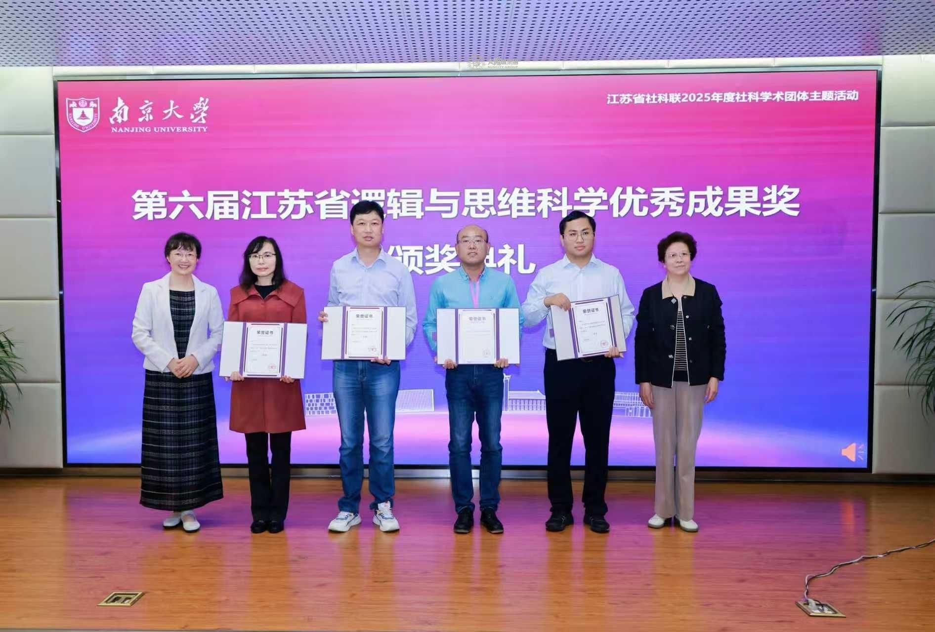 日前,“全国形式逻辑研讨会暨江苏省逻辑学会成立45周年纪念大会”在南京大学隆重举行。来自全国50余所高校和科研机构的150余位专家学者参会,围绕"智能时代的逻辑教育"等前沿议题进行了深入研讨。在大会的颁奖环节——第六届江苏省逻辑与思维科学优秀成果奖(2020-2024)颁奖典礼上,我院教师潘正华、王勇的研究成果荣获一等奖。王勇作为获奖代表上台领取获奖证书。