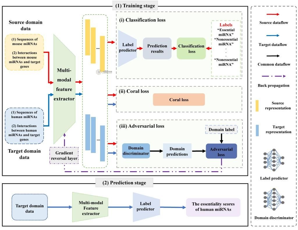 图2基于深度领域对抗学习框架的人类必需miRNA识别方法流程图