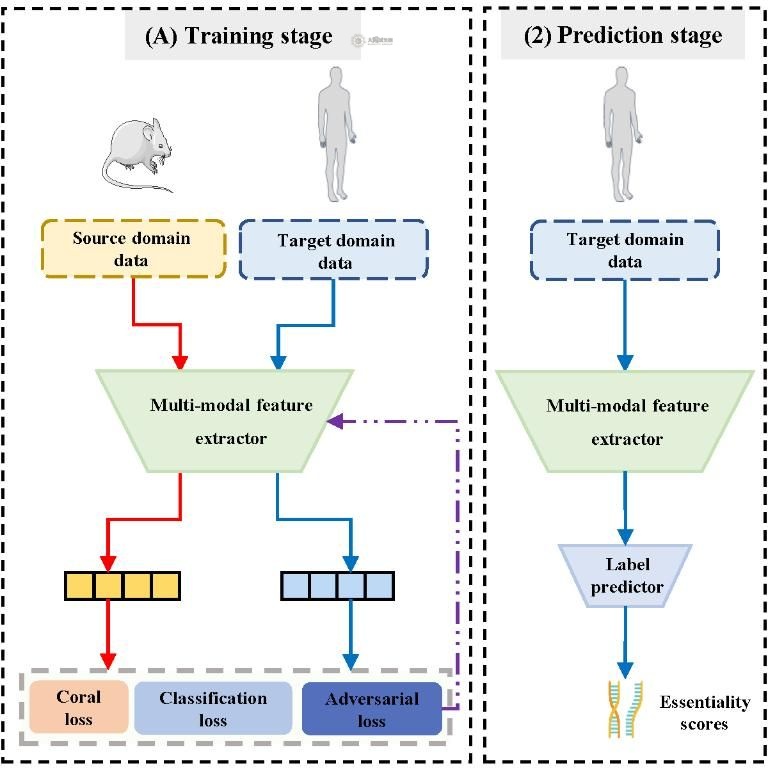 miRNA作为调控基因表达的关键非编码RNA分子,在细胞增殖、胚胎发育、造血分化等基础生理过程中发挥着不可替代的作用,同时也是RNA靶点治疗的核心靶点。它既能作为疾病早期诊断的生物标志物,也是开发精准疗法的“分子开关”。然而,传统通过基因敲除实验来识别必需miRNA的方法,受到高成本、长周期以及伦理约束等因素的限制,难以在人类中开展大规模筛选工作。与此同时,由于缺乏人类必需miRNA的实验验证标签,人类必需miRNA的精准识别长期面临瓶颈,这严重制约了RNA靶向治疗的研发进程。针对这一难题,陈兴教授团队创新性地提出了DeepHEM框架,构建了“多模态特征提取 + 多损失优化”的双核心设计。该设计成功将必需miRNA的标签知识从小鼠(源域)迁移至人类(目标域),进而实现了跨物种知识的高效迁移以及人类必需miRNA的精准预测。实验结果显示,DeepHEM的预测性能远超现有主流方法,充分证明了其架构设计的合理性与可靠性。生物相关性分析表明,具有较高必需性得分的miRNA不仅与更多疾病相关联,还具有更强的进化保守性。在对比实验中,DeepHEM在疾病谱宽度分数和保守性分数这两项生物指标的相关性分析中,显著优于传统域适应方法、深度域混淆方法以及深度适应网络,其预测结果中有80%可通过现有实验文献进行验证。更为重要的是,DeepHEM为RNA疗法研发提供了“低成本预筛选工具”。传统方法需要耗费数月至数年开展敲除实验来验证候选的必需miRNA,而DeepHEM能够快速预测人类miRNA的必需性,优先筛选出高潜力靶点,大幅缩短了湿实验周期。同时,其框架还可扩展至长链非编码RNA、环状RNA等其他非编码RNA的必需性预测,为泛RNA疗法研究奠定了基础。