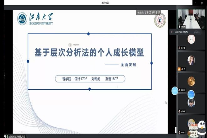 会议伊始,刘朝虎用基于层次分析法的个人成长模型来展开他在大学时期的学习生活经历,从模型建立、模型求解、模型检验三个独特的方式向同学们分享了自己的大学本科生涯,并进行交流互动,从如何做到专业学习、校园活动、学科竞赛、体育锻炼等多方面的平衡,再到大学期间课外书籍的推荐,刘朝虎根据自身的亲身经历向同学们解答。