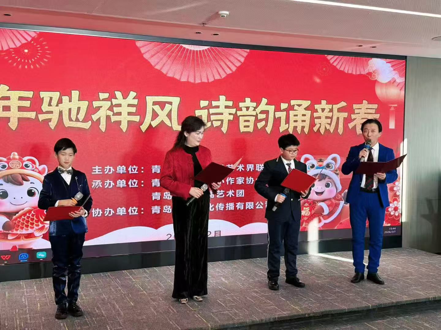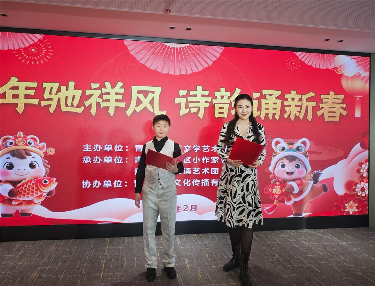 2月10日讯 “诗文随世远,无日不趋新。”欣逢马年新春伊始,2月7日,由青岛市市北区文学艺术界联合会主办,青岛市市北区小作家协会、青岛少儿朗诵艺术团承办,青岛艾尚文化传播有限公司协办的“少年驰祥风,诗韵诵新春”迎新春诗歌朗诵会在市北区浮山厚业中心百人大厅隆重举行。青岛市市北区文学艺术界联合会副主席郭显海为小作家会员颁发社会实践荣誉证书。青岛市市北区作家协会主席、市北区小作家协会名誉主席吴宝泉发表了热情致辞。 诗会由六位小作家倾情主持,朗诵者与表演者皆为朝气蓬勃的少年儿童。锦绣华夏,山河壮阔,每一寸土地都洋溢着炽热情怀。张恩铭同学朗诵的《万疆》,深情表达对祖国的无限眷恋与崇高敬意。孙艾可同学和她的妈妈管晓梦朗诵的《大雪冬日里的童话》,引领听众进入纯净无暇的冰雪世界。梁思源同学朗诵的《神州谣》,歌谣声声,激荡赤子之心与家国情怀。宋雨蔓同学朗诵的《我爱你彩色中国》,以缤纷色彩,描绘祖国最美的姿态。薄舒文、王芊润两位同学朗诵的《诗意中国》,诗意流淌于字间,温情浸润于心田。赵梦卓同学用动听歌声传递心愿,独唱《如愿》,歌声柔和有力,唱响对美好未来的期盼。吴一铭同学朗诵的《大写的中国》,方块字里,蕴藏着民族的脊梁与璀璨荣光。 亲子相伴最温馨,并肩相守更动人。管永博、周瑜亲子朗诵的《幸福树》,这份亲子演绎,是成长中珍贵的馈赠。张可馨同学朗诵的《中华少年郎》,尽显中华少年意气风发与担当。赵梦卓、王润禾两位同学朗诵的《我的南方和北方》,引领观众饱览祖国南北风光。杜增泽同学独唱的《少年中国说》,唱响中华少年蓬勃朝气与无限担当。刘祖善同学表演京剧《数太保》,字字铿锵,尽显武将豪情;金戈铁马唱经典,京腔京韵贺新春。张恩硕、隋金彤同学,携手李蕙汝、张顺两位老师,共同朗诵《在冬天的麦苗上看到祖国的春天》,少年意气与师者匠心交融,青春深情合诵,化作对祖国春天的礼赞。青岛二中分校的15位学生,登台朗诵的诗歌《你是人间四月天》,青春气息与纯真友谊,因诗歌而更显动人美丽。 中国音乐剧协会会员、山东朗诵艺术家协会理事、青岛市朗诵艺术家协会常务副主席王国庆,青岛市作家协会副秘书长、市北区作家协会秘书长、小作家协会主席于凌,青岛市市北区作家协会、小作家协会副主席张海滨、杨昌群,青岛市朗诵艺术家协会秘书长、市北区小作家协会副秘书长张顺,青岛少儿艺术团副团长李蕙汝,青岛市市北区作家协会理事王德伟、吕建军,青岛市作家协会会员、青岛市市北区小作家协会副主席兼秘书长、艾尚文化传播有限公司负责人周瑜等嘉宾出席活动。(通讯员 杨昌群)