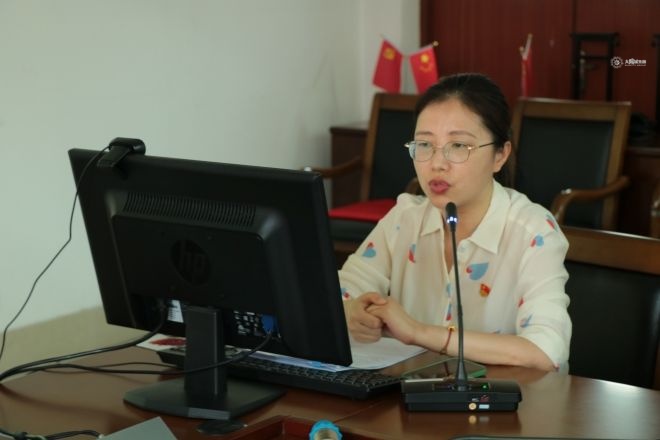 接着,分团委书记陆芳老师为大家讲解了毕业生党员组织关系转接注意事项。她向大家强调了党员组织关系介绍信对于党员同志的重要性,详细讲述了组织介绍信抬头、有效期、介绍信回执联返回等问题,并提醒江苏省内的党员同志尽快联系新的党组织在系统中完成转接。最后,孙康杰同学宣读了《外国语学院毕业生党员文明离校承诺书》,与会党员们完成了承诺书的签署工作。