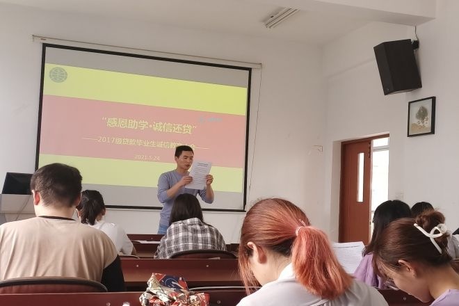 为充分发挥资助育人功效,培养毕业生诚实守信、知恩感恩的良好品质,结合学校《关于开展2021年太阳城大学学生资助诚信教育主题活动的通知》《关于开展国家开发银行生源地信用助学贷款2021届毕业生毕业确认工作的相关通知》的相关精神和要求,保证生源地信用助学贷款持续健康发展,引导大学生树立诚实守信的文明新风,524日下午130外国语学院在A433召开贷款毕业生诚信教育大会。毕业年级全体贷款学生参与了此次大会,会议由辅导员苗文建主持。