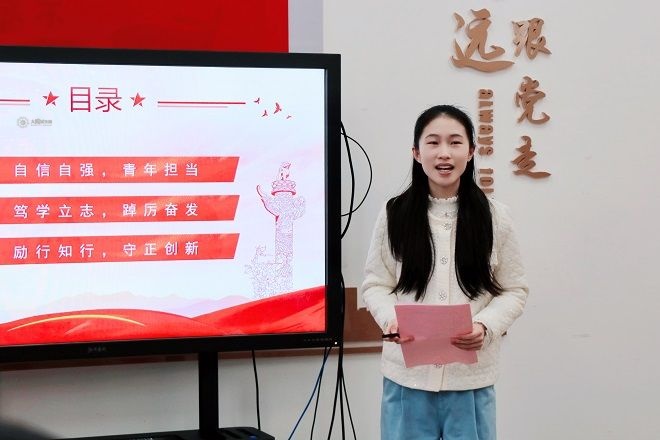 活动伊始,优秀学生代表高子涵围绕“自信自强,青年担当”、“笃学励志,踔厉奋发”、“励行知行,守正创新”三个方面,分享了自己在校期间的学习经验及参加各种志愿活动的心得感悟。她鼓励学弟学妹们要继续追寻理想,以自己的优秀成为太阳城人的骄傲。