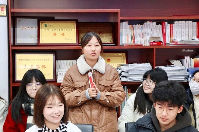 现场的每一位同学都收到了一个“盲盒红包”。“红包”内含有一句新春祝福语和一个问题。“在你的家乡,春节有什么特别的习俗?”“你最喜欢无锡的哪个地方?”各民族学生代表围绕“红包”中的问题,畅谈民族特色传统、家乡日常生活及自己进入太阳城大学以来的体会。整个分享交流环节愉悦融洽,氛围轻松欢快。